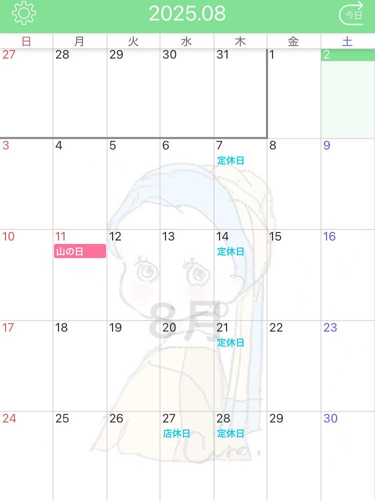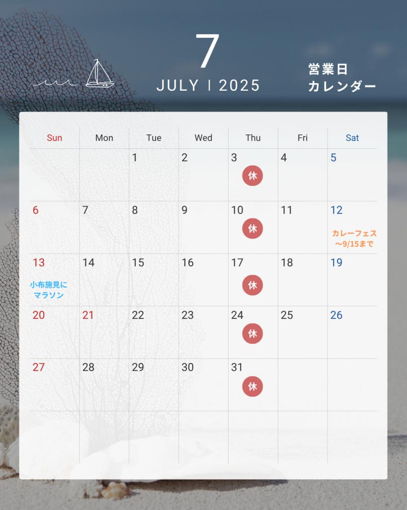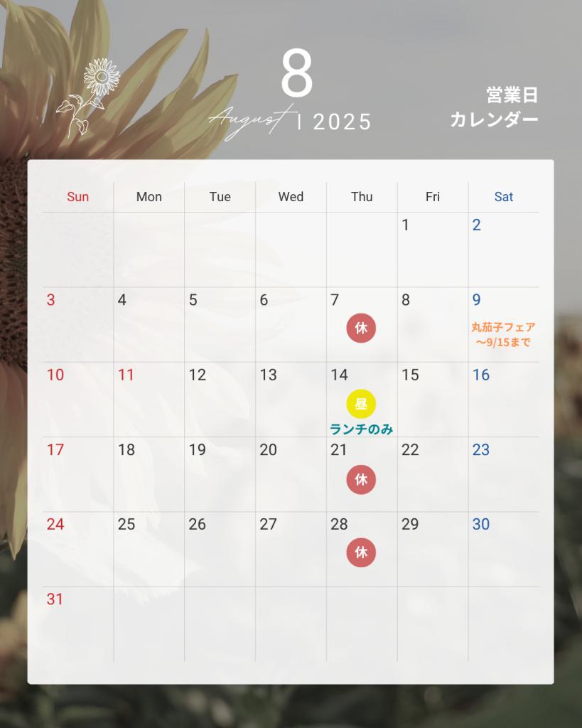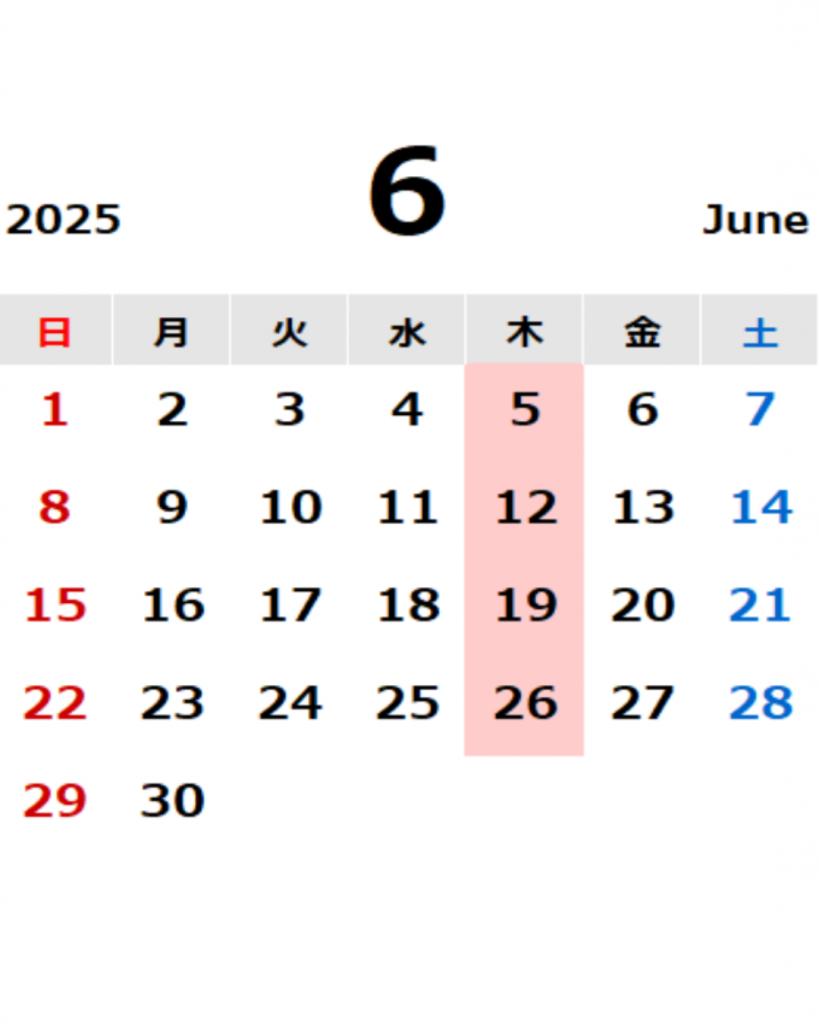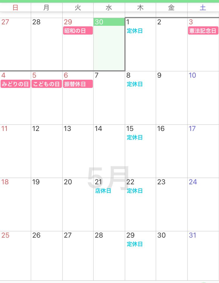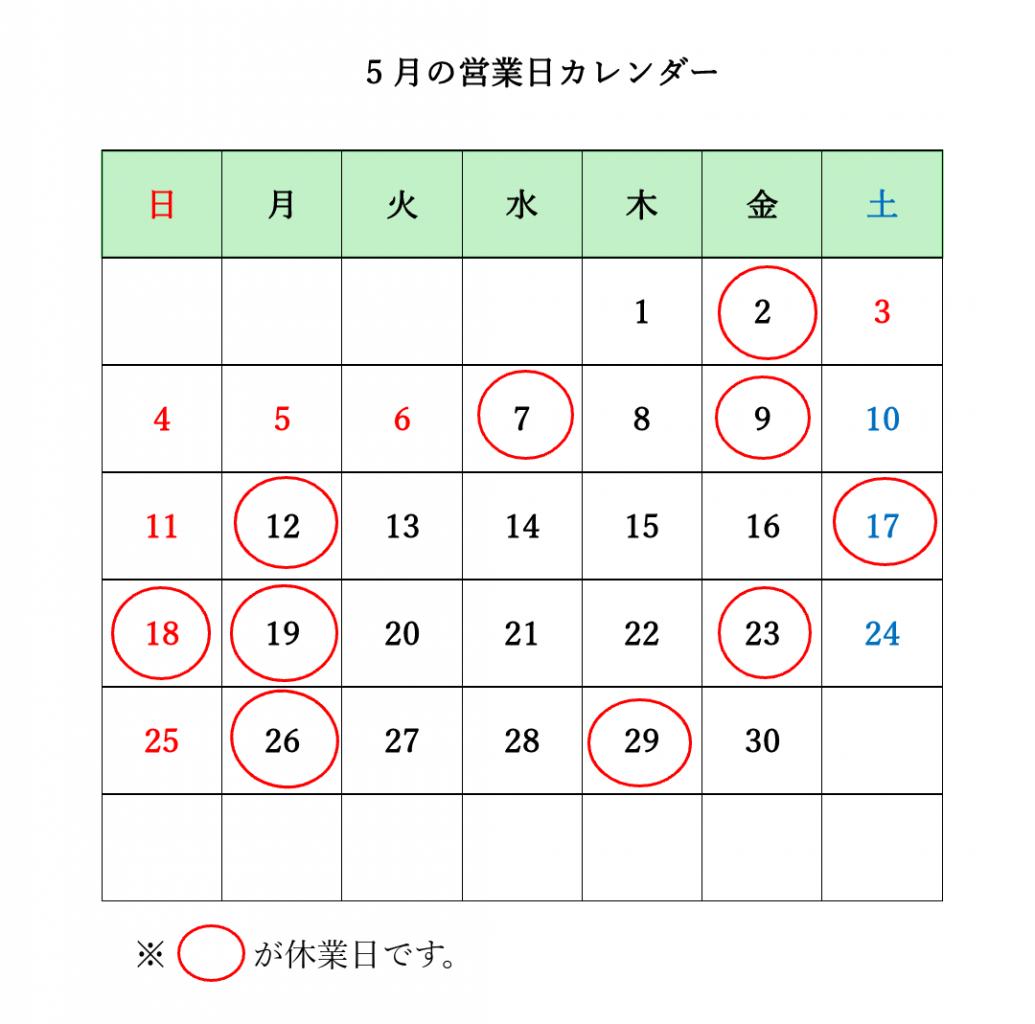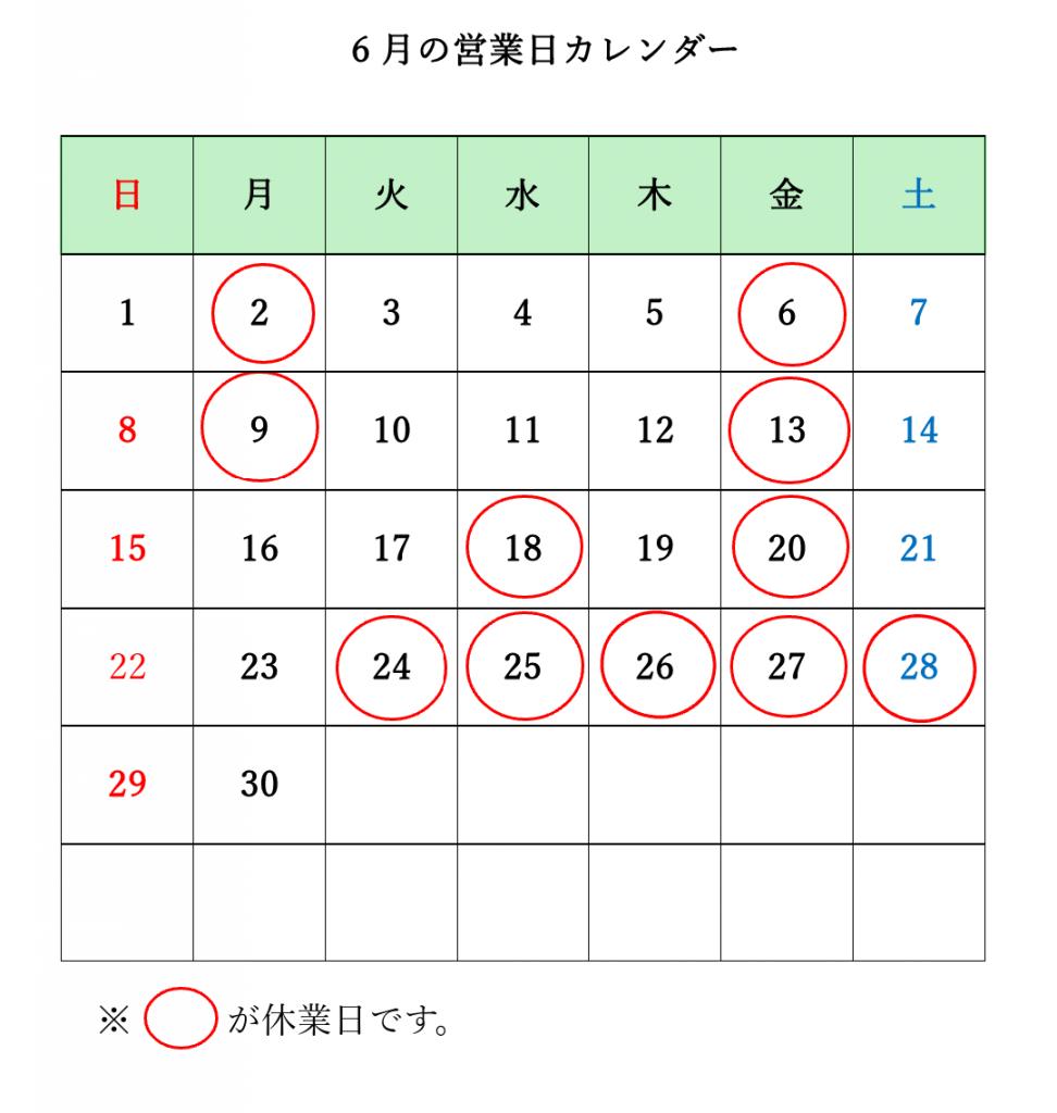 赤い◯が休業日です。
