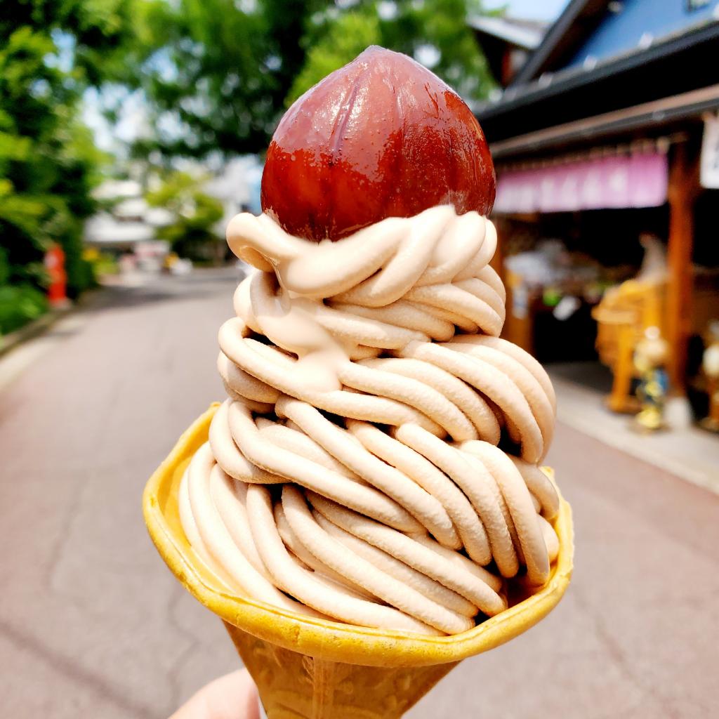 元祖栗ソフトクリームと手焼き煎餅の店です。 一番人気の「マロングラッセソフト」は見た目にも小布施らしさを感じられます。 また職人が魂を込めて焼き上げた煎餅も一度食べたらゆみつきになる「ぬれかり餅」もおすすめです。